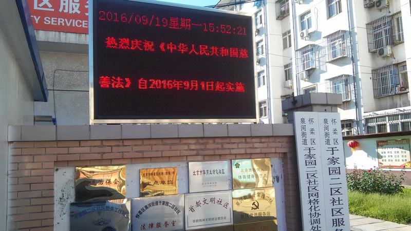 据悉,泉河街道按照区政府开展的“怀柔区慈善宣传月”要求,九月份在辖区内开展多种形式的《慈善法》普宣传活动。各社区积极响应,以电子屏宣传标语、开展专题讲座等形式,向辖区居民宣传《慈善法》内容和此项法律颁布实施的重要意义。