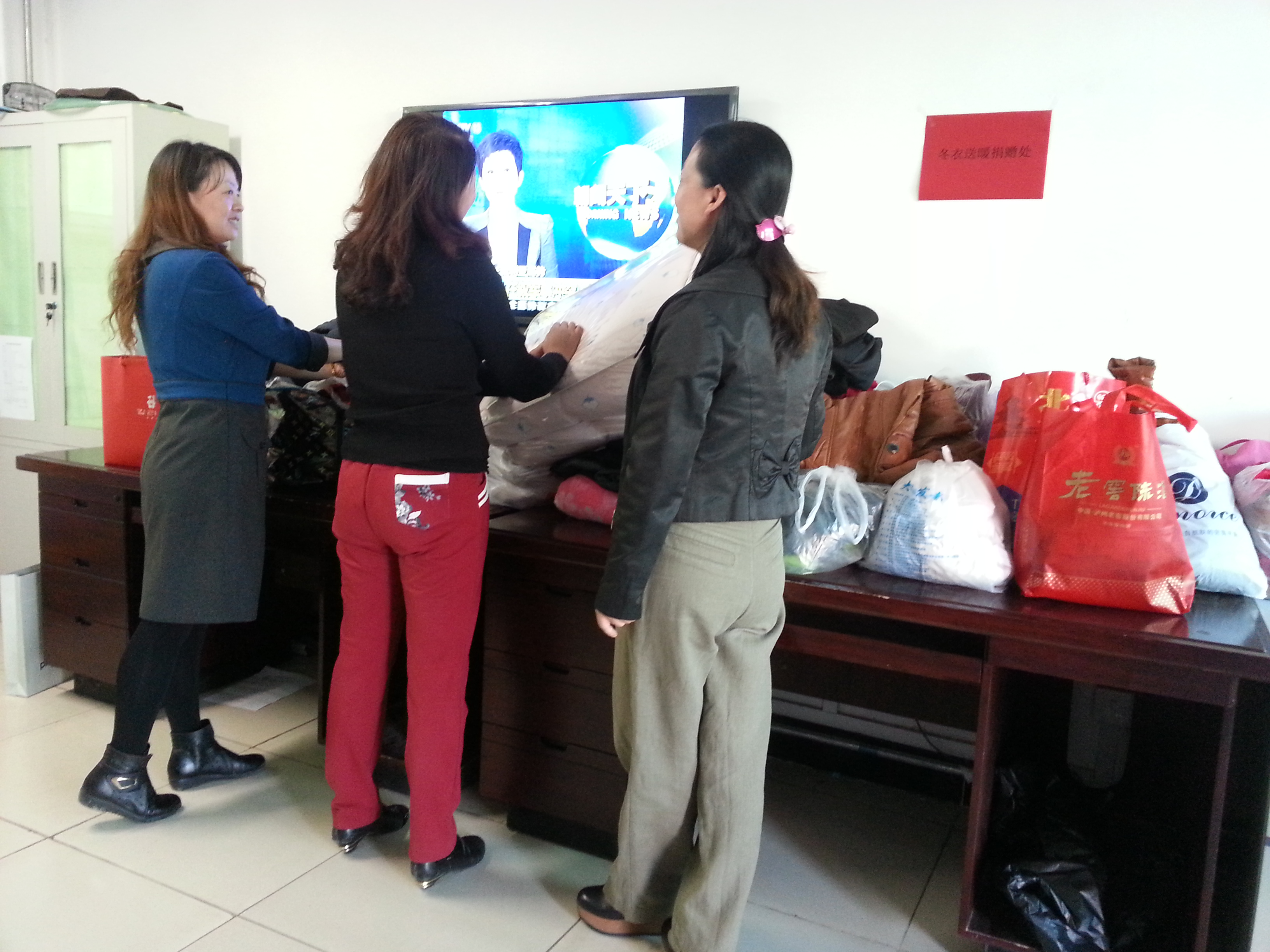 老师们积极踊跃的参加“冬衣送暖”活动,真正把温暖送到了灾区、贫困地区群众的心里,表现出学校教师团结互助,扶贫济困的传统美德。