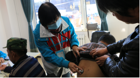 老人们就自己的病情询问,大夫一一悉心检查后即开药方叮嘱用药。大部分老人身患聋哑难以表达,熟知老人身体状况的敬老院工作人员在一旁帮忙“翻译”。老人们吃过志愿者包的饺子,围坐在一起听韩红等人的演唱,在敬老爱老的气氛中,老人们度过了一个温情而难忘的重阳节。