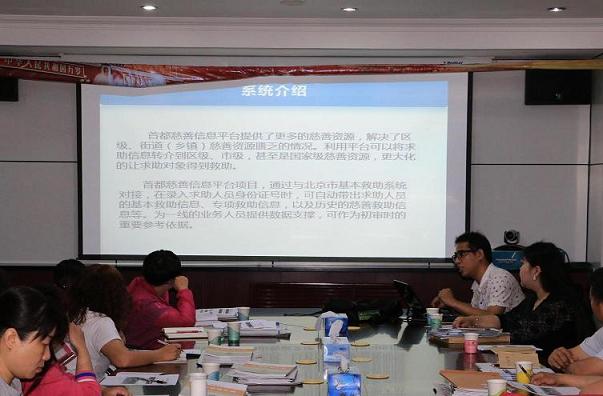 为贯彻落实精准救助,实现政府救助与慈善救助有效衔接,充分发挥首都慈善信息平台各项功能,6月1日,慈善工作科邀请信息平台技术开发人员到区民政局就首都慈善信息平台救助系统使用工作进行培训,各街道、镇乡社保所的20余位工作人员参加了此次培训。